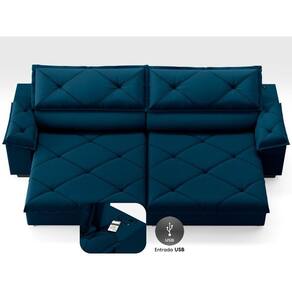 USB:Sofá com uma tomada contendo duas entradas USB para carregamento de eletrônicos, potência de 5V.Não incluso fonte de energia. Extensão do cabo da tomada pode variar de 70cm a 90cm.