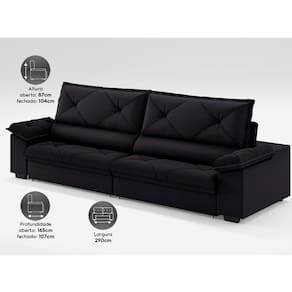 USB:Sofá com uma tomada contendo duas entradas USB para carregamento de eletrônicos, potência de 5V.Não incluso fonte de energia. Extensão do cabo da tomada pode variar de 70cm a 90cm.