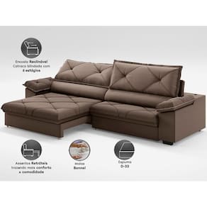 Enchimento do Assento:Espuma D-33 Soft, Percinta Elástica e Mola Bonnel.