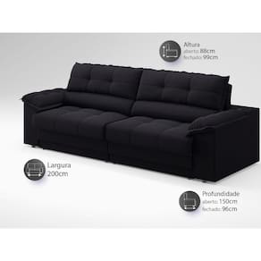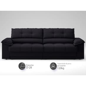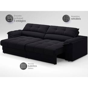 Sofá com Carregador USB e Molas no Assento Retrátil Reclinável Mimo 2,00m Velosuede - NETSOFAS - Preto