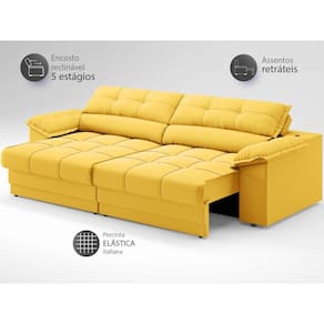 Sofá com Carregador USB e Molas no Assento Retrátil Reclinável Mimo 2,00m Velosuede - NETSOFAS - Amarelo