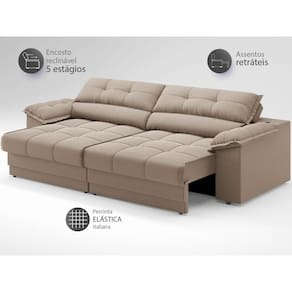 Sofá com Carregador USB e Molas no Assento Retrátil Reclinável Mimo 2,00m Velosuede - NETSOFAS - Marrom Cacau