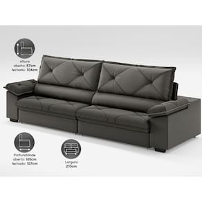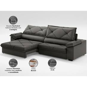 Sofá com Carregador USB e Molas no Assento Retrátil Reclinável Nice 2,10m Velosuede - NETSOFAS - Cinza