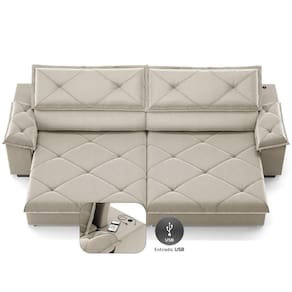 USB:Sofá com uma tomada contendo duas entradas USB para carregamento de eletrônicos, potência de 5V.Não incluso fonte de energia. Extensão do cabo da tomada pode variar de 70cm a 90cm.