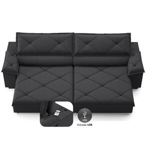 USB:Sofá com uma tomada contendo duas entradas USB para carregamento de eletrônicos, potência de 5V.Não incluso fonte de energia. Extensão do cabo da tomada pode variar de 70cm a 90cm.