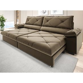 Sofá com Carregador USB e Molas no Assento Retrátil Reclinável Nice 2,90m Veludocristal - NETSOFAS - Marrom