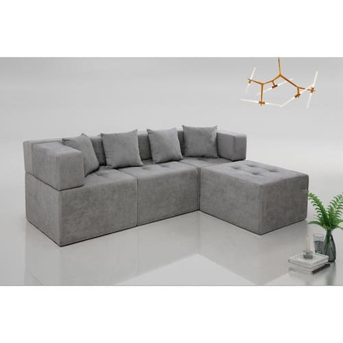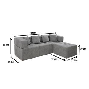 Sofá com Chaise 3 Lugares Taiti 231x77x47 Cm - caixa com 3 Unidade - Cinza.