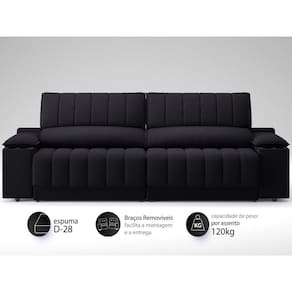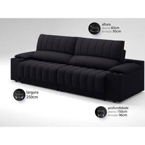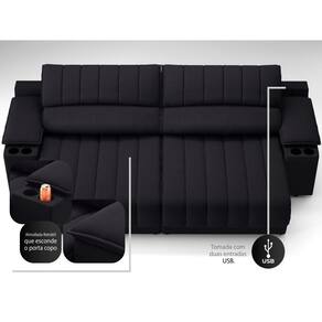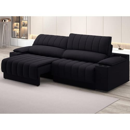 Sofá com Porta Copos Carregador USB Ret Rec Murano 2,50m Velosuede - NETSOFAS - Preto