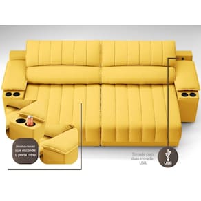 USB:Sofá com uma tomada contendo duas entradas USB para carregamento de eletrônicos, potência de 5V.Não incluso fonte de energia. Extensão do cabo da tomada pode variar de 70cm a 90cm.