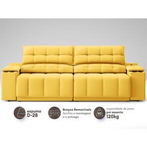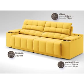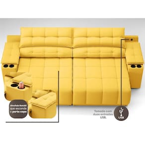 Sofá com Porta Copos Carregador USB Ret Rec Samurai 2,30m Velosuede Canário - NETSOFAS - Amarelo