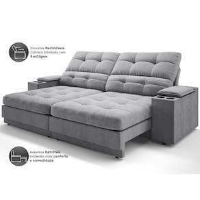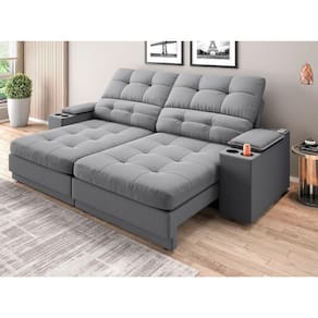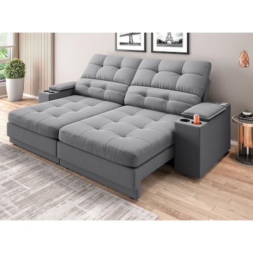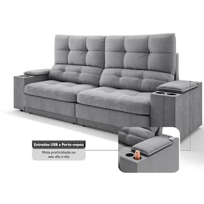 USB:Sofá com uma tomada contendo duas entradas USB para carregamento de eletrônicos, potência de 5V.Não incluso fonte de energia. Extensão do cabo da tomada pode variar de 70cm a 90cm.