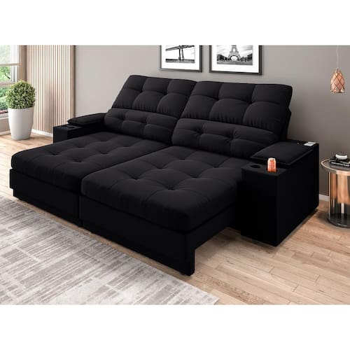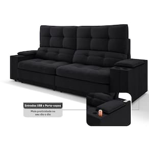 USB:Sofá com uma tomada contendo duas entradas USB para carregamento de eletrônicos, potência de 5V.Não incluso fonte de energia. Extensão do cabo da tomada pode variar de 70cm a 90cm.