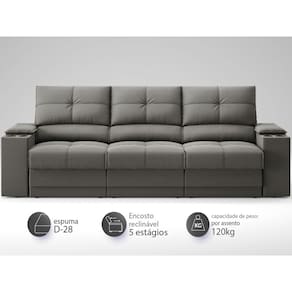 Os objetos que ambientam as fotos não acompanham o produto.Verifique as dimensões do produto e certifique-se que o percurso que ele fará até o local de uso permite sua passagem. Nós não nos responsabilizamos por transporte de produtos, caso não caibam em elevadores, acima de três lances de escada e não cabendo na passagem das escadas, por içamentos ou desmontagens de produtos. Quaisquer despesas deste tipo ficam a cargo do cliente.Sofá com Porta Copos. Possuem porta copos fixos no braço. As dimensões do porta copos são aproximadamente10cm x 5cmReservamo-nos o direito de possíveis erros de digitação. Anúncio sujeito a alteração sem aviso prévio.Antes da entrega, nossos produtos passam por um rigoroso controle de qualidade para que cheguem até o cliente em perfeitas condições, entretanto, em casos de desacordo com o proposto, o comprador deverá contatar o nosso SAC e/ou a loja aonde a compra foi efetuada.O prazo para solucionar os problemas identificados é de até 30 dias úteis, contados a partir da data do posicionamento do SAC com o comprador.