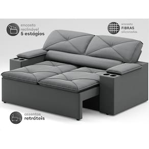 Sofá com Porta Copos Retrátil e Reclinável Pop 1,54m Velosuede - NETSOFAS - Grafite