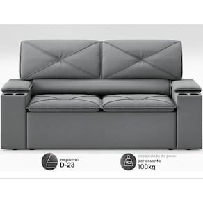Porta Copos:Sofápossui quatro porta copos fixos (dois em cada braço). As dimensõesdo porta coposão aproximadamente10cmx5cm