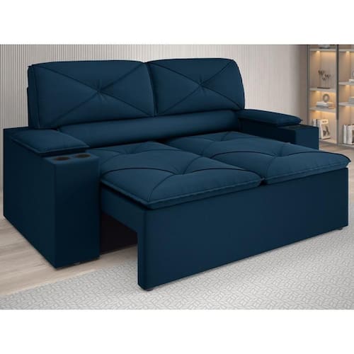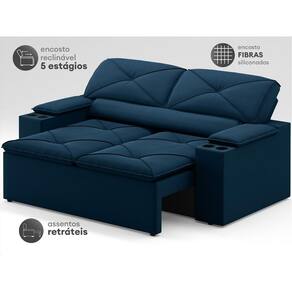Sofá com Porta Copos Retrátil e Reclinável Pop 1,54m Velosuede - NETSOFAS - Azul Petróleo