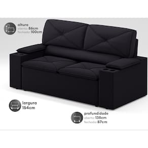 Porta Copos:Sofápossui quatro porta copos fixos (dois em cada braço). As dimensõesdo porta coposão aproximadamente10cmx5cm