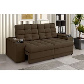 Sofá Confort Premium 1,70m Assento Retrátil/Reclinável porta copos e USB Suede Marrom - XFlex Sofas