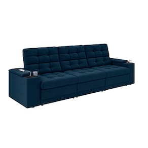 Especificações Técnicas: Assento: Fibra Siliconada e flocos Encosto: Removível com fibra e flocos Braço: Espuma D18 com porta copos Corrediça: Tubular Pés: Sapata PVC Estrutura: Madeira (Eucalipto/OSB) Percintas: Elásticas ASS/ENC Dimensões: Comprimento: 230 cm, Altura: 100 cm, Profundidade: 92 cm, Abertura: 125 cm Pillow top: Não Cubagem: 1,45 M3 Peso Aproximado: 55kg