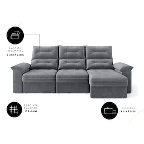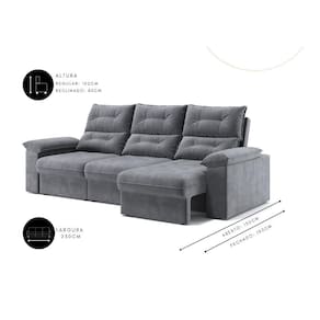Sofá Copacabana Retrátil e Reclinável 4 Lugares 3 assentos Suede Grafite 230cm
