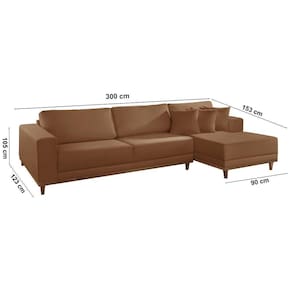 Sofá Cronos 03 Metros Chaise Lado Direito Meu Sofá Online B020 Veludo Terra