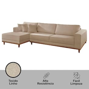 Sofá Cronos 03 Metros Chaise Lado Esquerdo Meu Sofá Online A226 Linho Bege