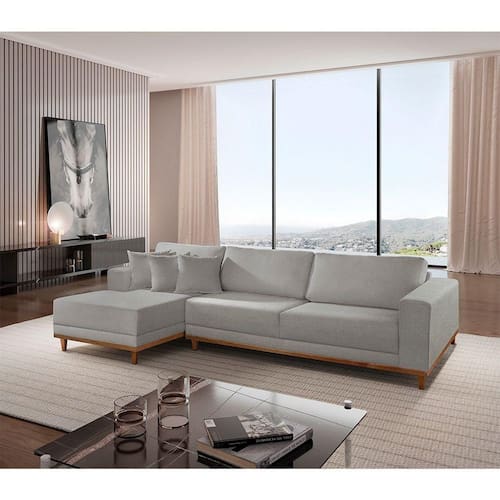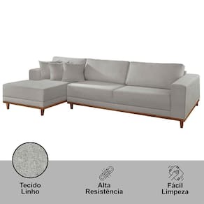 Sofá Cronos 03 Metros Chaise Lado Esquerdo Meu Sofá Online A230 Linho Cinza
