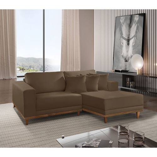 Sofá Cronos 185cm Chaise Lado Direito Meu Sofá Online - Marrom Escuro
