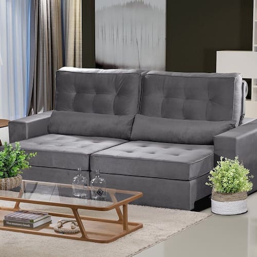 Sofá Curitiba Modular 5 Lugares 2.50 MT Retrátil e Reclinável - Cinza