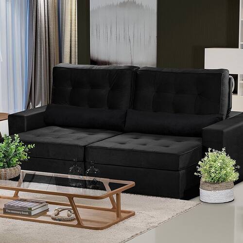 Sofá Curitiba Modular 5 Lugares 2.50 MT Retrátil e Reclinável - Preto