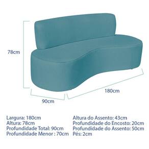 Sofá Curvo Orgânico Escritório Recepção 3 Lugares Amsterdã 180cm Suede Cor Azul Turquesa