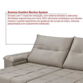 Seu encosto reclinável em cinco posições, proporcionando-lhe mais conforto na hora do descanso. Não para por aí: seu assento retrátil conta com espuma D26 com pillow top, transformando seu sofá em uma verdadeira cama para assistir seus esporte/series/filmes favoritos.