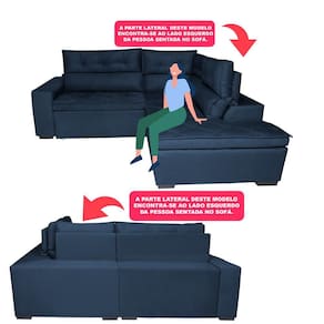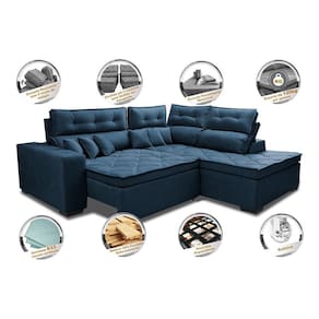 Sofá de Canto 2,60x2,36m Retrátil e Reclinável com Molas Cama inBox Platinum. Direito Suede - Azul Marinho