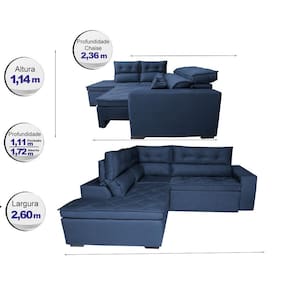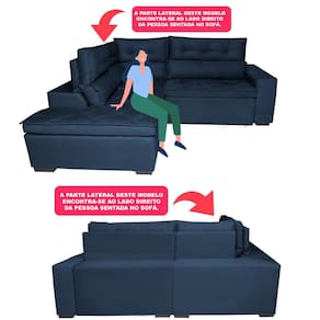 Sofá de Canto 2,60x2,36m Retrátil e Reclinável com Molas Cama inBox Platinum. Esquerdo Suede - Azul Marinho