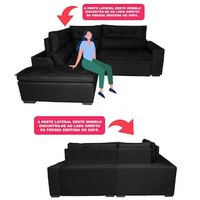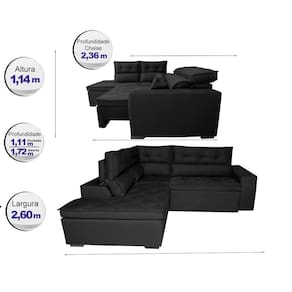 ATENÇÃO PARA A POSIÇÃO DO SOFÁ: olhando ele de frente, a chaise fica na esquerda, sentado no sofá a chaise fica na direita.