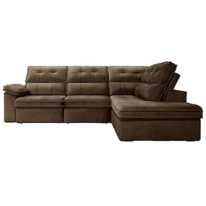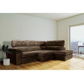 Dimensões do produto Altura: 102 cm Largura lado direito: 200 cm Largura lado esquerdo: 284 cm Profundidade assento retrátil fechado: 102 cm Profundidade assento retrátil aberto: 139 cm Peso: 125 kg