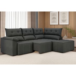 Conteúdo da embalagem: Sofá em 2 módulos (canto + 2 lugares), embalado com papelão, plástico e manta.