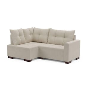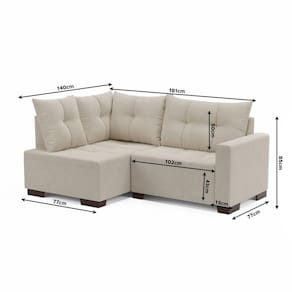 Sofá de canto modulado com 1 chaise, 1 peça de dois lugares. Estrutura em madeira de eucalipto e pinnus, composto com percinta elástica, manta siliconada e espuma d23. Revestido com tecido suede liso bege . Almofadas soltas com enchimento em fibra e flocos. Pés de plástico na cor tabaco. Acompanha Almofadas extras: Não Almofada do assento: Fixa Almofada do encosto: Fixa Altura do assento até o chão: 43 cm Altura do Conjunto: 85 Altura do Encosto: 50 Altura dos Pés: 6 Ambiente Principal: Sala de Estar Complexidade da Montagem: Cor: Bege Cor do Produto: Bege Densidade do Assento: D-23 Densidade do Encosto: D-23 Enchimento do Assento: Espuma Enchimento do Encosto: Espuma Estilo de Braço: Braços Quadrados Firmeza do Assento: Médio Informações Complementares: A sua sala de estar para estar completa merece o estofado de canto Leme, seja para receber a família e amigos ou curtir o seu momento de descanso. Tem como principal característica o conforto e a versatilidade. Excelente estrutura composta por madeira de Itens Inclusos: 1 peça de 2 lugares, 1 chaise e 4 almofadas. Largura do Sofá Maior: cm Linha ou Coleção: Manual de Especificação Técnica: Manual de Montagem e Instalação: Material dos Pés: Plástico Montagem Flex: Necessita Montagem: Não Origem do Produto: Nacional Peso: 51.5 Pet Friendly: Não Possui Percintas Elásticas: Sim Possui Pés: 08 Possui Rodízio: Não Profundidade Quando Estendido: cm Recomendações de Uso, Manutenção e Limpeza: Seguir o manual de instruções Resistente à Chuva: Revestimento do Braço: Suede Rodízio com Trava: Sistema de Montagem: Suporta Até (kg): 120 Tecido Predominante: Suede Tipo de Encosto: Fixo Tipo de Mola: Não Possui