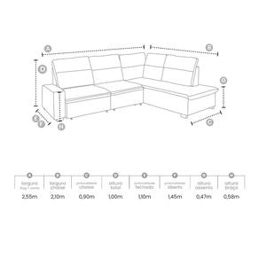 Dimensões: Altura: 100 cm Largura: 255 cm Profundidade: 210 cm Peso: 92,50 kg