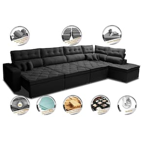 Chegou o Maravilhoso Sofá de Canto Retrátil e Reclinável com Molas Cama inBox Platinum. O que o torna especial são assentos com espuma D33 envolvidas em fibra Siliconada Compactada para que tenha um toque gostoso e aconchegante, além de seu maravilhoso designer com costuras duplas e puxes que o embelezam, proporcionando conforto de um colchão em um Belíssimo Sofá. Sua sala jamais será como antes!