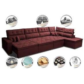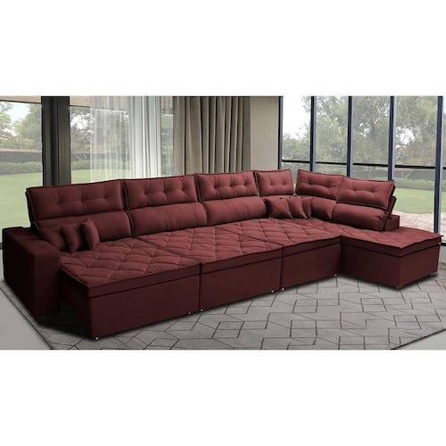Sofá de Canto 4,80x2,36m Retrátil e Reclinável com Molas Cama inBox Platinum. Direito Suede - Vinho