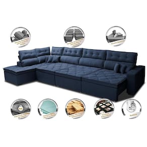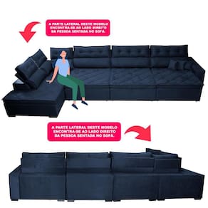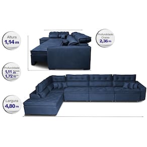 Sofá de Canto 4,80x2,36m Retrátil e Reclinável com Molas Cama inBox Platinum. Esquerdo Suede - Azul Marinho