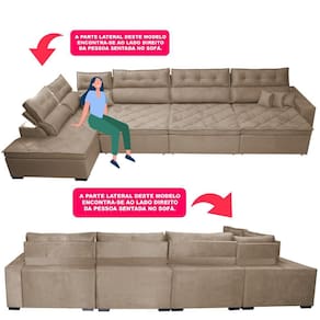 Sofá de Canto 4,80x2,36m Retrátil e Reclinável com Molas Cama inBox Platinum. Esquerdo Suede - Bege