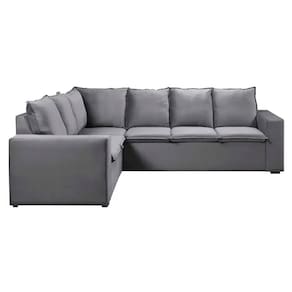 Características: Modelo: Melissa Tipo de sofá: Sofá de canto Quantidade de lugares: 5 lugares Tipo de encosto: Fixo Material de encosto: Fibra siliconada e flocos Tipo de assento: Fixo Material do assento: Cintas elásticas Material da estrutura: Madeira de eucalipto reflorestado Tipo de espuma: Espuma D23 Pés: Sim