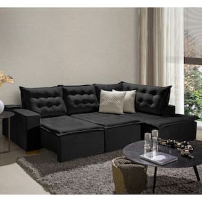 Sofá De Canto 5 Lugares Vitoria 270cm Retrátil E Reclinável Com Tecido Veludo Nobre Sofatec Preto