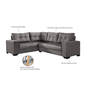 O Sofá de Canto 5 Lugares Bia, acomoda tranquilamente 5 pessoas, é ideal para deixar sua sala de estar muito mais bonita e convidativa. Confeccionado com madeira reflorestada de pinus, molas e almofadas soltas, ele garante maior durabilidade e resistência, conforto para reunir seus familiares. Produto Montado: Sim Acompanha Manual de Instalação: Não Almofada do assento: Fixa Almofada do encosto: Removível Altura do assento até o chão: 46.0000 Altura do Encosto: 46 cm Altura dos Pés: 6 cm Ambiente: Sala de Estar Ambiente Principal: Sala de Estar codigo_ean: 7898603514412 Complexidade da Montagem: Baixa: pode ser montado por uma pessoa sozinha Cor: Cinza Cor: Cinza Cor do Produto: Cinza Densidade do Assento: D-26 Enchimento do Assento: Espuma Enchimento do Encosto: Fibra Siliconada Estilo de Braço: Braços Quadrados Estilo de Cor: Colorido Itens Inclusos: 1 Sofá de Canto 5 Lugares e Kit de Pés. Largura do Sofá Maior: 260 cm Linha ou Coleção: Bia Material dos Pés: Madeira Montagem Flex: Não Necessita Montagem: Sim Nível de Conforto: Macio Recomendações de Uso, Manutenção e Limpeza: Não utilizar produtos químicos, usar pano levemente umedecido com água. Revestimento do Braço: Tecido Sistema de Montagem: Rosqueamento dos pés e encaixe. Tecido Predominante: Suede Tipo: Sofás Ean: 7898603514412