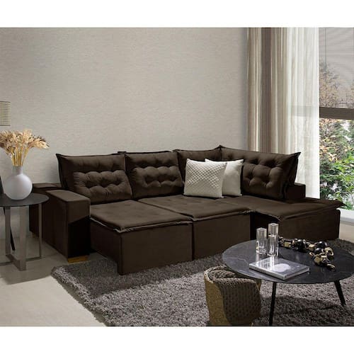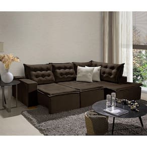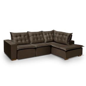 Sofá de Canto 5 Lugares Vitoria 270cm Retrátil e Reclinável com Tecido Veludo Nobre Sofatec - Marrom
