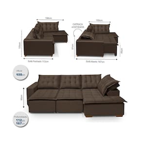 Profundidade do Sofá Aberto e da Chase Fixa: 167 cm