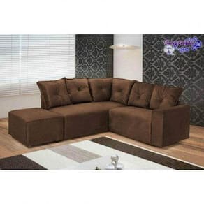 Sofá de Canto 5040 com 5 Lugares e Puff Grande de Tecido Suede