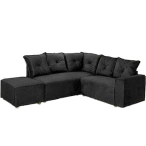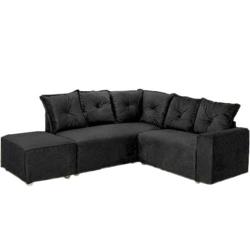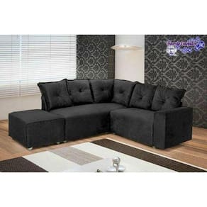 Sofá de Canto 5040 com 5 Lugares e Puff Grande de Tecido Suede